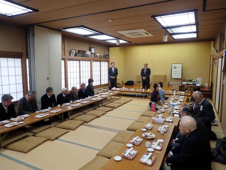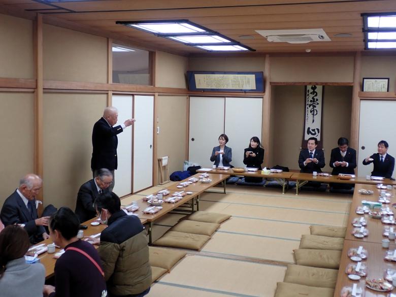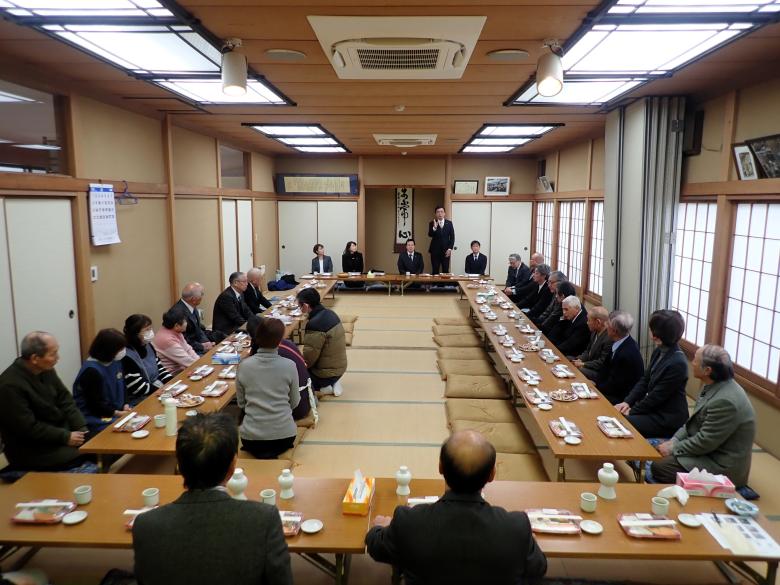 社務所大広間における直会(なおらい)の様子。